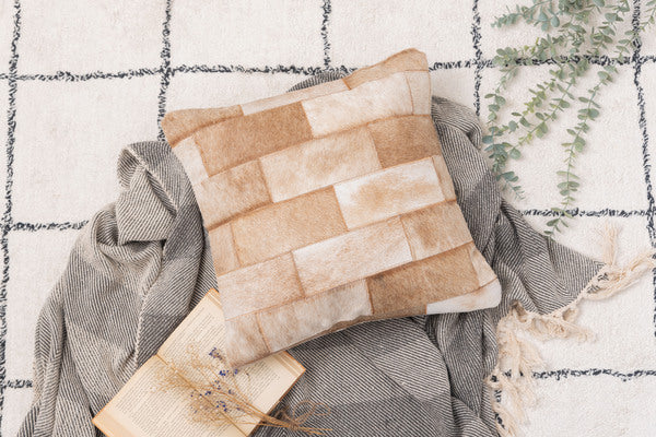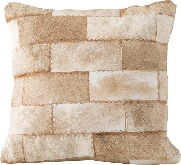 クッション 正方形 シンプル おしゃれ 本革 コットン レザー 綿 毛足の短い 牛革 パッチワーク 個性的 ベージュ グレー 高級感 FAB-102