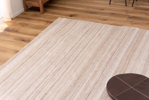 手織りで1点ずつ作られた、混色の風合いが美しいラグ。